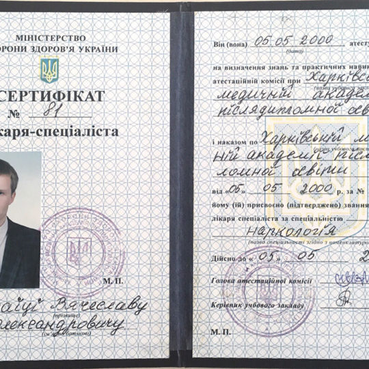Опыт работы во всех сферах клинической наркологии, 5 лет в наркологической реанимации.