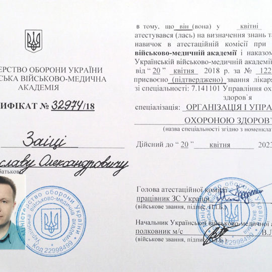 Член Коллегии Аддиктологов Национальной медицинской палаты Украины
